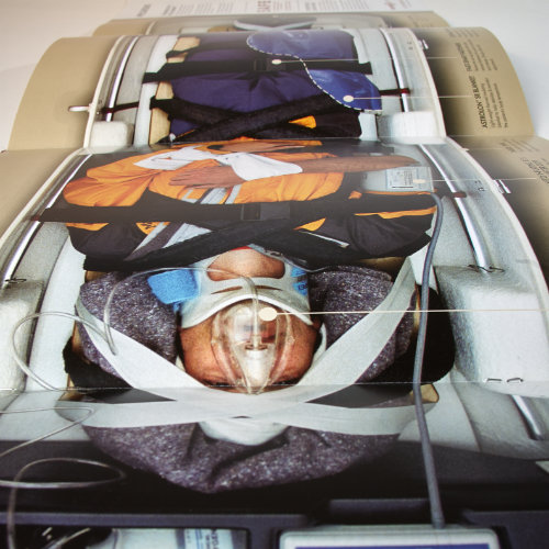 Printed with only two Pantone® colours (two plates). Each image is manually coloured with a metallic orange and a custom black.
